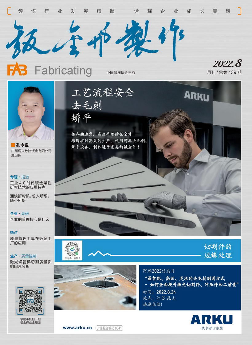 《鈑金與制作》雜志是中國鍛壓協(xié)會主辦的目前國內(nèi)惟一一本面向鈑金制作、管型線材加工行業(yè)的綜合性高端雜志。憑借中國鍛壓協(xié)會多年服務(wù)鈑金和管型線材行業(yè)的優(yōu)勢,努力搭建供應(yīng)商與用戶企業(yè)間的信息平臺,做好政府、高校、科研院所及企業(yè)間溝通的橋梁。