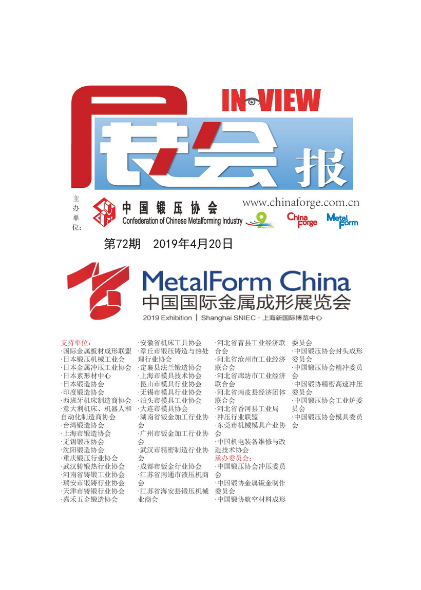 中國鍛壓協(xié)會的品牌展覽會―中國國際金屬成形展單年回到上海舉辦,主題是:“新時代、新技術(shù)、新未來”,誠邀貴公司參展!該展包含四個主題展: