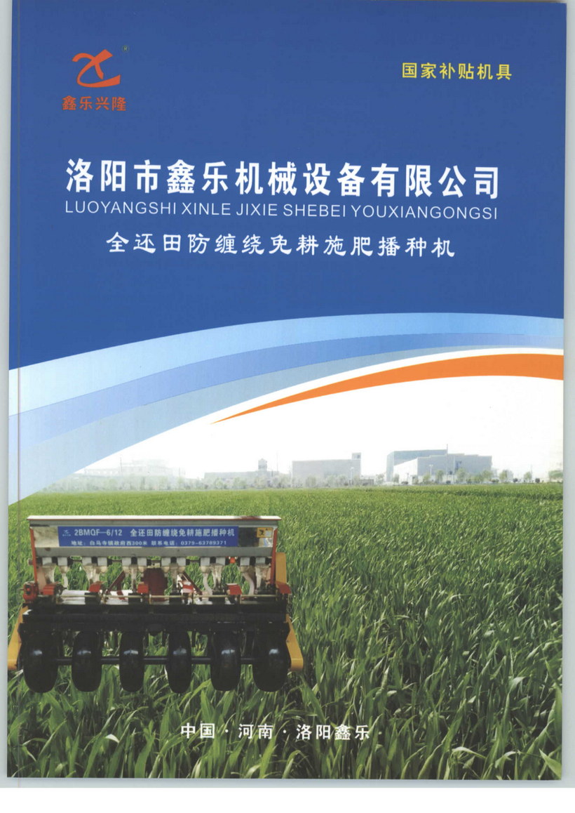 洛陽市鑫樂機(jī)械設(shè)備有限公司,地處佛教圣地“釋源祖庭白馬寺”西一公里,是專業(yè)生產(chǎn)“全還田防纏繞免耕施肥播種機(jī)”系列產(chǎn)品的企業(yè)公司。我公司生產(chǎn)的“全還田防纏繞免耕施肥播種機(jī)”是十多年來緊緊圍繞國家農(nóng)業(yè)部提出的保護(hù)性耕作技術(shù)研發(fā)的新型機(jī)械裝備,是旋耕刀的換代產(chǎn)品,在農(nóng)機(jī)技術(shù)上有重大突破,填補(bǔ)了國內(nèi)技術(shù)及產(chǎn)品的空白,技術(shù)理念達(dá)到國際先進(jìn)水平,有效滿足現(xiàn)代農(nóng)業(yè)復(fù)式、聯(lián)合、節(jié)能、高效的農(nóng)業(yè)技術(shù)作業(yè)需求,是國家農(nóng)業(yè)部提出的實(shí)現(xiàn)“全國主要農(nóng)作物全程機(jī)械化”的重點(diǎn)推廣機(jī)型。