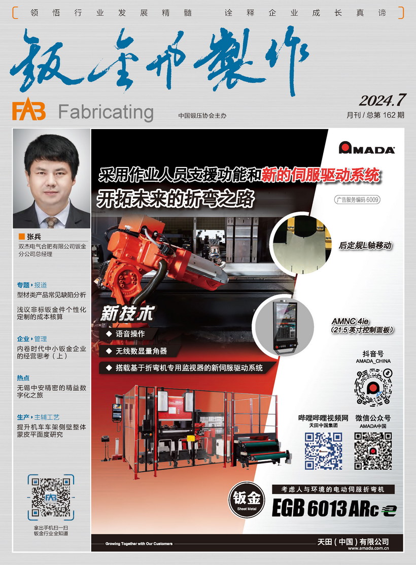 《鈑金與制作》雜志是中國鍛壓協(xié)會(huì)主辦的目前國內(nèi)惟一一本面向鈑金制作、管型線材加工行業(yè)的綜合性高端雜志。憑借中國鍛壓協(xié)會(huì)多年服務(wù)鈑金和管型線材行業(yè)的優(yōu)勢(shì),努力搭建供應(yīng)商與用戶企業(yè)間的信息平臺(tái),做好政府、高校、科研院所及企業(yè)間溝通的橋梁。