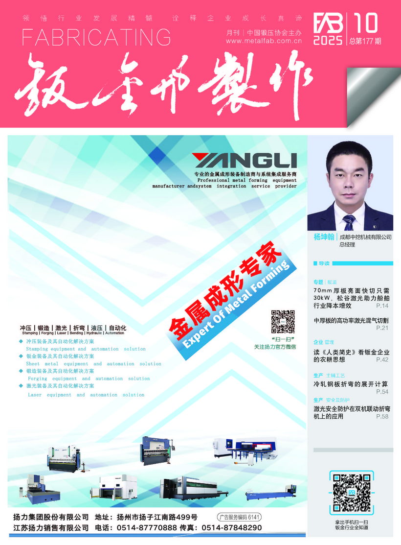 《鈑金與制作》雜志是中國鍛壓協(xié)會主辦的目前國內(nèi)惟一一本面向鈑金制作、管型線材加工行業(yè)的綜合性高端雜志。憑借中國鍛壓協(xié)會多年服務(wù)鈑金和管型線材行業(yè)的優(yōu)勢,努力搭建供應(yīng)商與用戶企業(yè)間的信息平臺,做好政府、高校、科研院所及企業(yè)間溝通的橋梁。