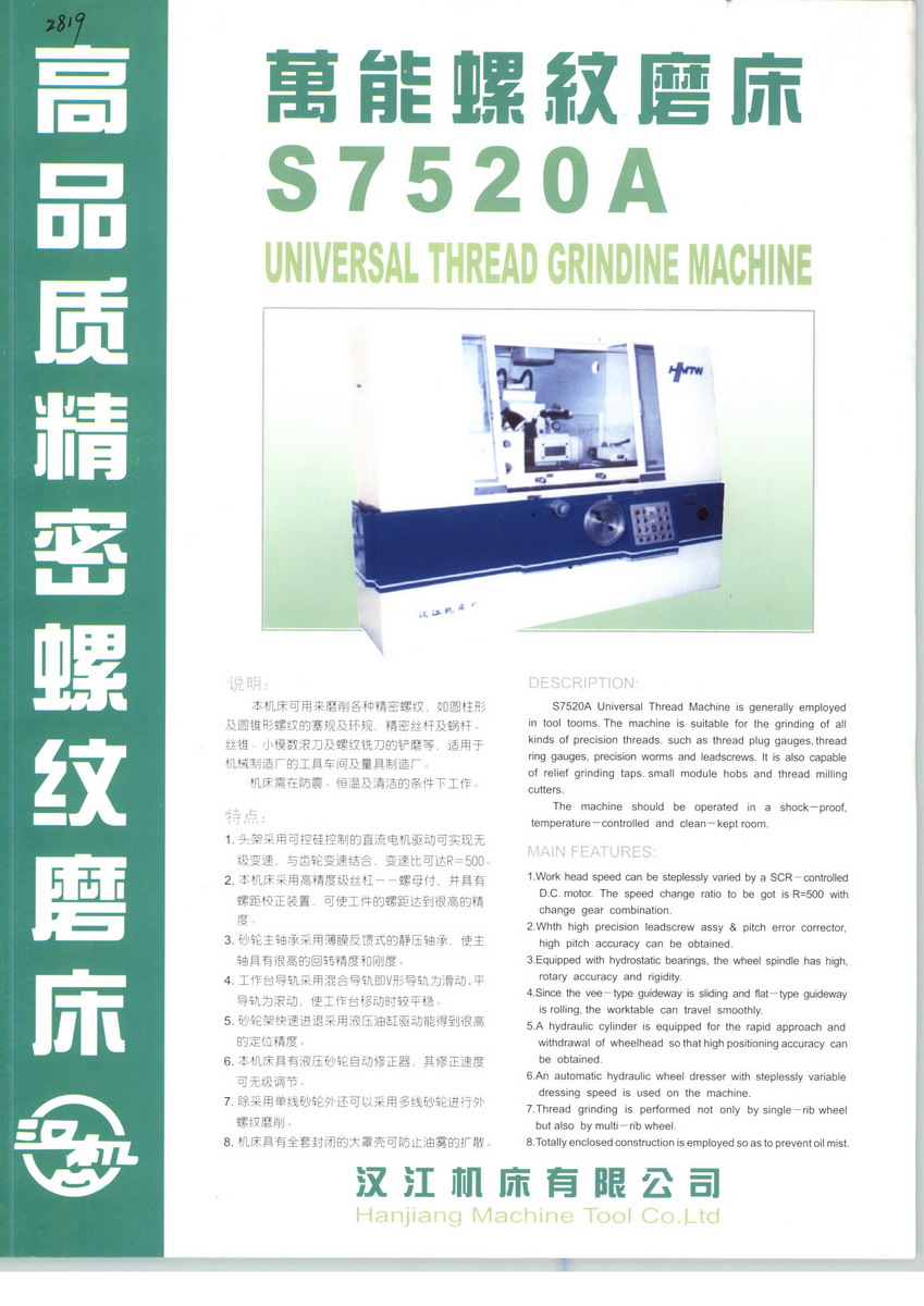 公司秉承“誠信為本、精益求精”的企業(yè)精神,堅持“國內(nèi)領(lǐng)先、國際一流”的發(fā)展戰(zhàn)略,經(jīng)過近50年的歷程,發(fā)展到目前主要以生產(chǎn)高精度數(shù)控螺紋磨床系列、螺桿磨床、蝸桿磨床、絲錐磨床、塞規(guī)磨床、曲軸磨床、花鍵磨床、萬能外圓磨床、平面磨床等精密數(shù)控機床裝備,變壓器硅鋼片縱剪線、數(shù)控可轉(zhuǎn)位刀片周邊磨、光伏行業(yè)硅片多線切割機等專機設(shè)備和精密測量儀器,各類功能部件(滾珠絲杠副、直線導(dǎo)軌副、滾動導(dǎo)軌塊、滾動花鍵副、螺桿轉(zhuǎn)子副、齒輪齒條副、精密工作臺)等精密零部件產(chǎn)品的高新技術(shù)企業(yè),擁有從加工工藝、加工設(shè)備、計量檢測、標(biāo)準(zhǔn)制定的螺紋制造全產(chǎn)業(yè)鏈核心技術(shù)?!皾h機牌”螺紋磨床、滾珠絲杠榮獲“陜西省名牌產(chǎn)品”稱號,國內(nèi)市場占有率第一,用戶領(lǐng)域廣泛,涵蓋機床工具、航空航天、鐵路、軍工、礦山冶金、石油化工、汽車、通用機械及IT等行業(yè)。公司在上海浦東和江蘇昆山建有浦東分廠、昆山分廠,同時,在北京、上海、西安設(shè)有銷售公司,在全國各地設(shè)立了代理機構(gòu),產(chǎn)品遠銷歐美、俄羅斯、東南亞、中東及拉美地區(qū)。