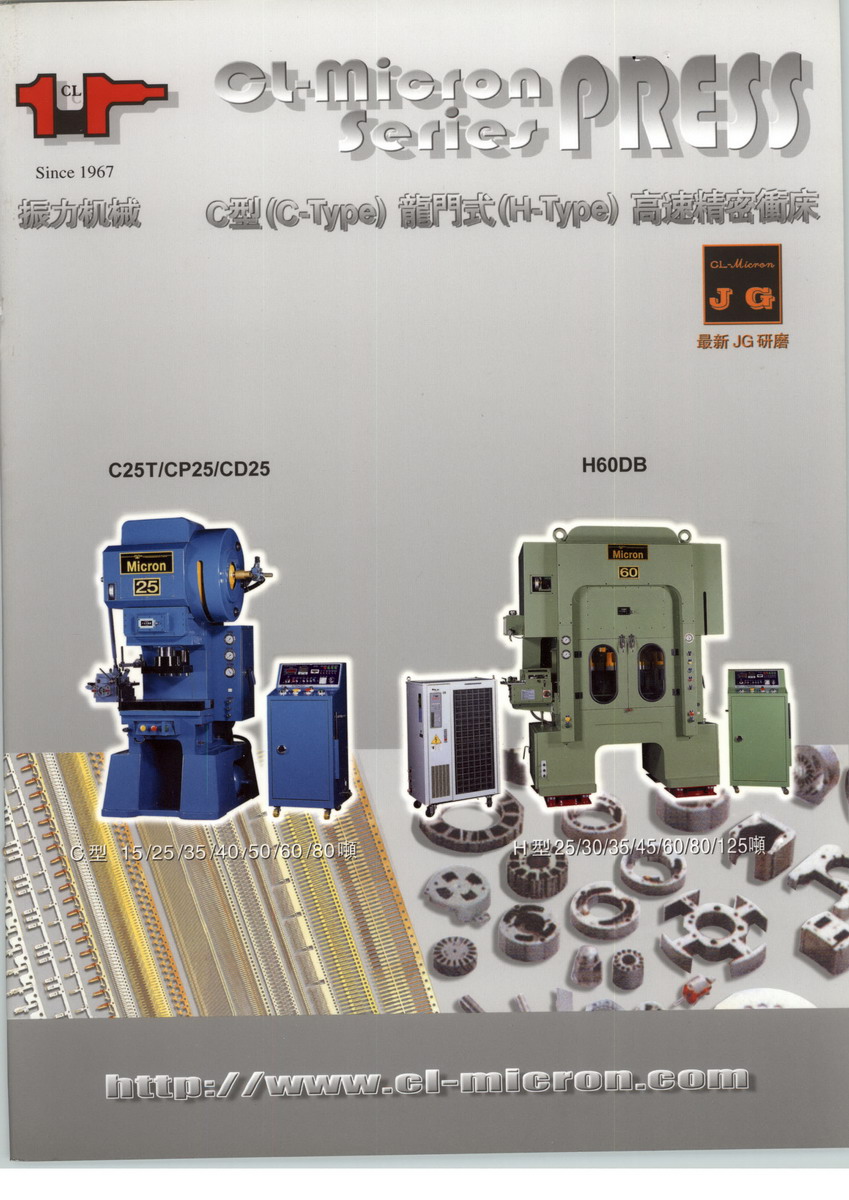 振力機(jī)械股份有限公司成立于1967年,專業(yè)生產(chǎn)高速精密沖床及夾式送料機(jī) 本公司高速沖床類型如下: 1、三圓導(dǎo)柱c型15t/25t/35t/40t/50t/60t/80t 2、龍門式四/八圓導(dǎo)柱式h型30t/35t/45t/60t/80t/125t 3、雙曲軸系列產(chǎn)品 我司產(chǎn)品已遠(yuǎn)銷美、韓、南亞、東南亞等國家,國內(nèi)已受到廣大客戶良好的評價和信任度。 為使顧客獲得更高的滿意度,我公司將繼續(xù)追求精益求精,提供最佳產(chǎn)品及高質(zhì)量的服務(wù),回報客戶。 公司簡介如下: 1967年 成立振力機(jī)械公司(前身)于臺北縣三重市/銷售沖床零件 1969年 開發(fā)第一部臥式肘節(jié)式?jīng)_床 1970年 銷售出口 第一條干電池鋅殼沖床生產(chǎn)線到印尼的abc公司 1975年 投資興建新莊廠/銷售臥式肘節(jié)式?jīng)_床超過150部 1976年 遷移到新莊廠 1987年 開發(fā)c型高速精密沖床/臺灣第一部三圓導(dǎo)柱式高速精密沖床 1989年 開發(fā)h型龍門式高速精密沖床 1991年 鴻海公司開始向本公司購買h型龍門式高速精密沖床 1993年 開發(fā)ip系列肘節(jié)式高速精密沖床/美國molex開始向本公司購買h型龍門式高速精密沖床 1993年 成立美國服務(wù)中心/新加坡半導(dǎo)體廠fine stamping購買高速精密沖床 1993年 開發(fā)夾式送料機(jī)gf90 1994年 興建龍?zhí)抖S 1995年 開發(fā)c一type cd系列/振力高速精密沖床銷售超過2000臺/成立中國深圳服務(wù)中心 1996年 開發(fā)h一type龍門式db系列 1996年 日本山一電機(jī)(yamaichi)股票上市公司開始向本公司購買h型龍門式高速精密沖床 2001年 興建振力機(jī)械(昆山)有限公司 2001年 精英集團(tuán)欽騰公司共向本公司購買超過140部各式高速精密沖床 2002年 tyco中國深圳公司開始向本公司購買龍門式?jīng)_床 2003年 成立溫州辦事處 2004年 美商安費(fèi)諾開始向本公司購買龍門式?jīng)_床 2006年 引進(jìn)高精密jg研磨床開建零組件/成立廈門及廣東中山服務(wù)中心 2007年 成立寧波服務(wù)中心/承建三期