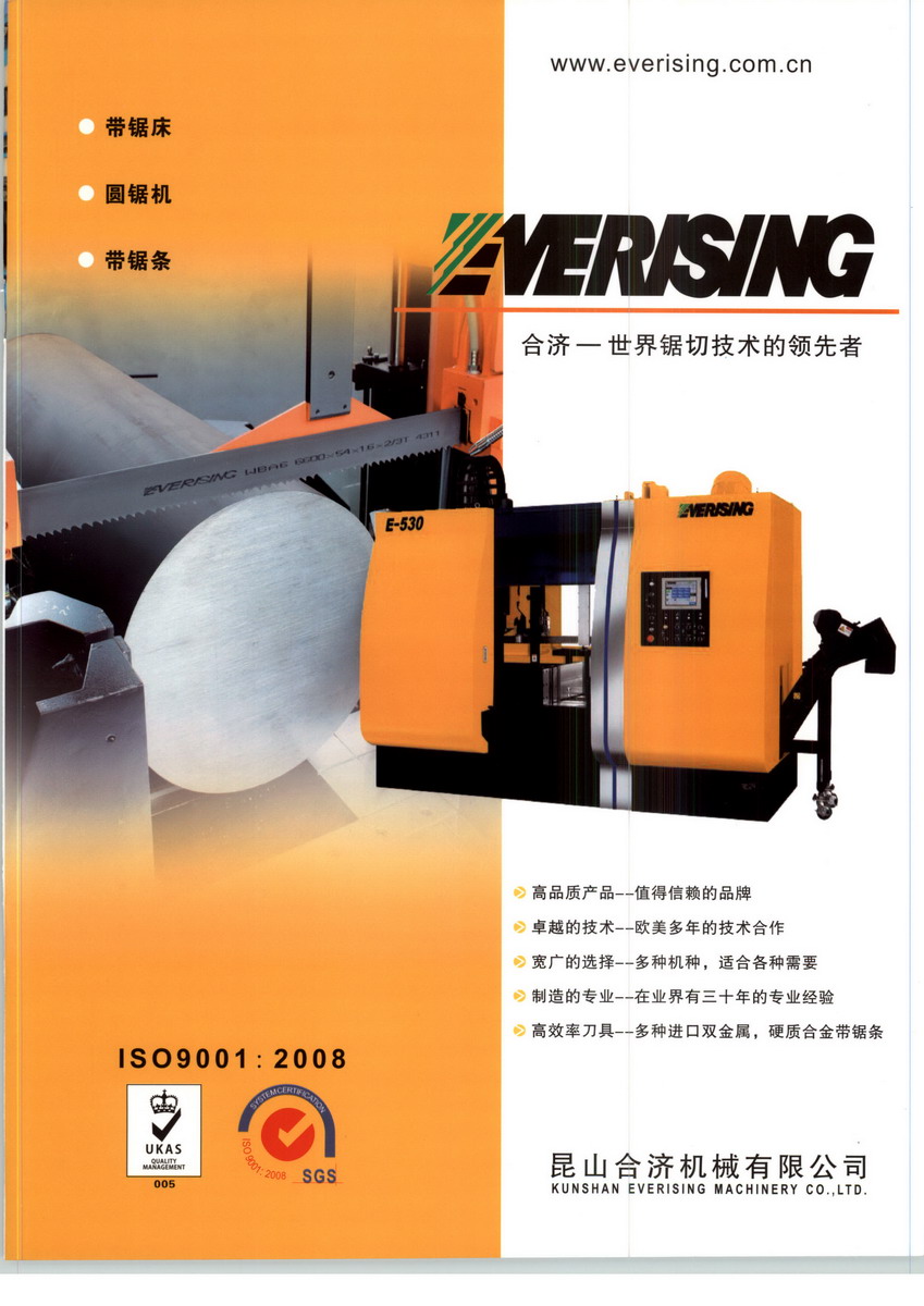 昆山合濟(jì)機(jī)械有限公司為臺(tái)灣合濟(jì)工業(yè)股份有限公司于2001年在中國(guó)江蘇省昆山成立的獨(dú)資企業(yè)。 臺(tái)灣“合濟(jì)”工業(yè)專業(yè)生產(chǎn)金屬用帶鋸床,圓鋸機(jī)已三十幾年,是臺(tái)灣最大的鋸床生產(chǎn)工廠。 各種規(guī)格從小型到超大型一應(yīng)俱全將近二百個(gè)機(jī)種之多,產(chǎn)品大量外銷歐﹑美﹑亞洲等國(guó)家,質(zhì)量處于世界領(lǐng)先水平,也獲得國(guó)內(nèi)10大煉鋼廠及各企業(yè)的信任。昆山合濟(jì)機(jī)械有限公司采用臺(tái)灣合濟(jì)的先進(jìn)的生產(chǎn)技術(shù)和嚴(yán)格的以人為本的管理經(jīng)驗(yàn),10多年以來(lái)就取得了驕人成績(jī),營(yíng)銷服務(wù)網(wǎng)點(diǎn)含蓋華夏,大、小型鋸床暢銷國(guó)內(nèi)外市場(chǎng),引領(lǐng)國(guó)內(nèi)同行業(yè)共同進(jìn)步。