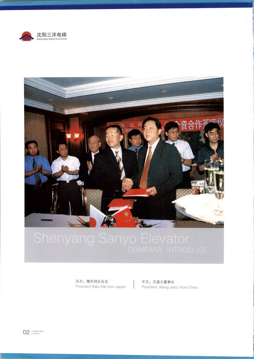 隸屬于沈陽(yáng)三洋重工集團(tuán)的沈陽(yáng)三洋電梯有限公司。是中國(guó)電梯協(xié)會(huì)副理事長(zhǎng)單位、中國(guó)電梯協(xié)會(huì)設(shè)計(jì)與制造專(zhuān)業(yè)委員會(huì)秘書(shū)長(zhǎng)單位、沈陽(yáng)電梯協(xié)會(huì)理事長(zhǎng)單位。是一家集電梯開(kāi)發(fā)、生產(chǎn)、銷(xiāo)售、安裝、服務(wù)于一體的電梯企業(yè)。