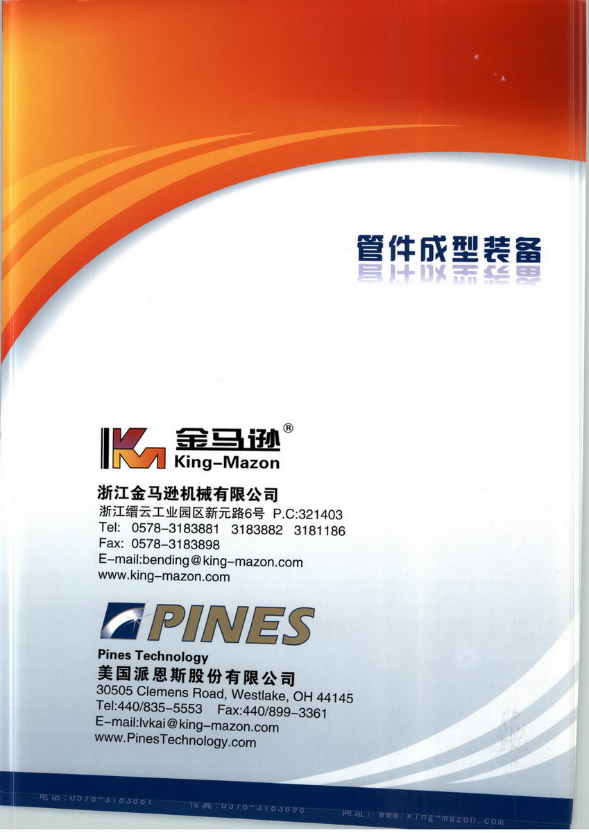 浙江金馬遜機械有限公司是全球獨具特色的管件成型裝備企業(yè),成立于2003年7月,注冊資本1000萬元,現(xiàn)有生產(chǎn)廠房面積14000多平方米,員工117名,其中研發(fā)人員36名。是一家集研發(fā)、制造、銷售為一體的高端裝備制造型企業(yè),是國家高新技術(shù)企業(yè)。本著生產(chǎn)一代、研制一代、預(yù)研一代的技術(shù)路線發(fā)展,主要產(chǎn)品有數(shù)控彎管機、管端成型機、液壓彎管機、多工位管端成型機、船舶重型彎管機、全自動切割機、高速鋁材切割機、卷彎機、工業(yè)機器人智能化導(dǎo)管生產(chǎn)線等。管件事業(yè)部承接彎管和成型等管件和導(dǎo)管加工、管道工程等業(yè)務(wù)。我公司是國家標(biāo)準(zhǔn)《數(shù)控彎管機》、《彎管機安全》和行業(yè)標(biāo)準(zhǔn)《重型彎管機》、《管端成型機》等10多標(biāo)準(zhǔn)起草單位。建設(shè)有博士后科研工作站和管件成型裝備研發(fā)中心。累計承擔(dān)了"數(shù)控彎管機""船舶重型彎管機"等6項國家級科研項目。團隊帶頭人享受國務(wù)院特殊津貼,是國家863項目專家。主要產(chǎn)品已經(jīng)成功應(yīng)用在美國波音飛機、中國成飛、中國西飛、昌河飛機、洪都飛機、219所、602所、703所等航空航天及軍工領(lǐng)域;是德國大眾、奧迪、寶馬、奔馳、保時捷、美國通用、福特、康明斯、中國一汽、東風(fēng)、福田等高端汽車配件企業(yè)的設(shè)備供應(yīng)商;德國拜耳、德國普姿邁斯特、德國NAP、意大利達涅利、意大利威埃姆、中船重工、中國北車、中國南車、中國核電、中國海軍等一批知名企業(yè)都是我們的用戶。金馬遜研發(fā)中心和博士后工作站對管道冷彎曲成型的應(yīng)力應(yīng)變和彈塑性技術(shù)、智能化加工技術(shù)、機器人技術(shù)、成型模具技術(shù)、潤滑技術(shù)等方面作了大量的研究,在通過這些研究取得的理論基礎(chǔ)上金馬遜團隊作了大量的試驗證明和修正了研究數(shù)據(jù),研究導(dǎo)管數(shù)字化加工裝備,以及基于工業(yè)機器人技術(shù)的導(dǎo)管和管件生產(chǎn)線成套裝備。金馬遜已經(jīng)成功自主研究開發(fā)了450型重型數(shù)控彎管機,該數(shù)控彎管機是目前世界上最大規(guī)格的纏繞式數(shù)控彎管裝備;我們的多軸伺服數(shù)控彎管機在薄壁導(dǎo)管彎制成型中,橢圓度和褶皺度等多項技術(shù)居國際領(lǐng)先水平。我們還自主研究開發(fā)彎管機的數(shù)控系統(tǒng)及控制軟件。主要產(chǎn)品有數(shù)控彎管機、全電動數(shù)控彎管機、飛機導(dǎo)管數(shù)控彎管機、鍋爐盤管數(shù)控彎管機、多層模數(shù)控彎管機、左右彎數(shù)控彎管機、核安全級數(shù)控彎管機、管端成型機、金屬圓鋸機等具導(dǎo)管彎制成型加工設(shè)備。為了很好的與歐洲技術(shù)接軌,金馬遜在德國漢堡建設(shè)了技術(shù)中心,在美國克利夫蘭成立大飛機燃料管道彎曲裝備研發(fā)中心,同時引進外國工程師在華工作,經(jīng)過引進消化吸收再創(chuàng)新的經(jīng)營方法,成功突破了多項世界共性技術(shù)難題,技術(shù)居國際領(lǐng)先水平,擁有30多項發(fā)明專利和實用新型專利,發(fā)表10多篇專業(yè)論文,多次獲得省部級科學(xué)技術(shù)進步獎,得到了毛省長、周廳長、王書記、黃市長等眾多領(lǐng)導(dǎo)的考察和關(guān)懷。金馬遜產(chǎn)品主要應(yīng)用于國家重點技術(shù)領(lǐng)域的航空航天、核電、機車、船舶、汽車等領(lǐng)域。主要客戶有:德國大眾、德國拜耳、德國NAP、德國普姿邁斯特、美國波音公司、美國施丹德公司、中國成飛、中國西飛、洪都飛機、昌河飛機、中國海軍、中國核電、大連船舶重工、武昌船廠、青山船廠、南車株電、青島四方、北車唐客、北車齊齊哈爾、東方鍋爐、哈電集團等。產(chǎn)品遠銷德國、英國、波蘭、捷克、西班牙、俄羅斯、加拿大、美國、墨西哥、巴西、澳大利亞、馬來西亞、新加坡、越南、日本、韓國、南非、伊朗等五十多個國家和地區(qū);我們的產(chǎn)品已經(jīng)被100多家國際500強企業(yè)應(yīng)用,并得到客戶一致好評。 我們堅持“以高尚人品打造國際精品,憑技術(shù)創(chuàng)新鑄就世界品牌”的企業(yè)理念,不斷提升產(chǎn)品技術(shù)和質(zhì)量,立志打造一個世界上最專業(yè)的管件成型裝備制造基地。竭誠歡迎新老朋友光臨惠顧!攜手共創(chuàng)更輝煌的明天!金馬遜對多個不同行業(yè)的產(chǎn)品進行了細分研究,已經(jīng)擁有以下產(chǎn)品:數(shù)控彎管機,全自動彎管機,CNC數(shù)控彎管機,CNC彎管機,立體彎管機,NC彎管機,液壓彎管機,半自動彎管機,單頭彎管機,雙頭彎管機,小半徑彎管機,蛇形管彎管機,加熱彎管機,折彎機,螺旋彎管機,方管彎管機,多層模彎管機,單層模彎管機,熱彎彎管機,中頻彎管機,機器人彎管機,重型彎管機,飛機彎管機,鍋爐彎管機,盤管彎管機,排氣管彎管機,管端成型機,數(shù)控管端成型機,多工位管端成型機,擴口機,縮口機,卡壓式管件成型機,端頭成型機,卷彎機,型材彎曲機,滾彎機,沖孔機,切管機,倒角機,模具,彎管模具。我公司還對彎管模具的輪模、夾模、導(dǎo)模、防皺模、防皺板、防皺塊、芯棒、芯桿、模具自動潤滑、芯棒自動潤滑等技術(shù)展開研究,發(fā)現(xiàn)彎